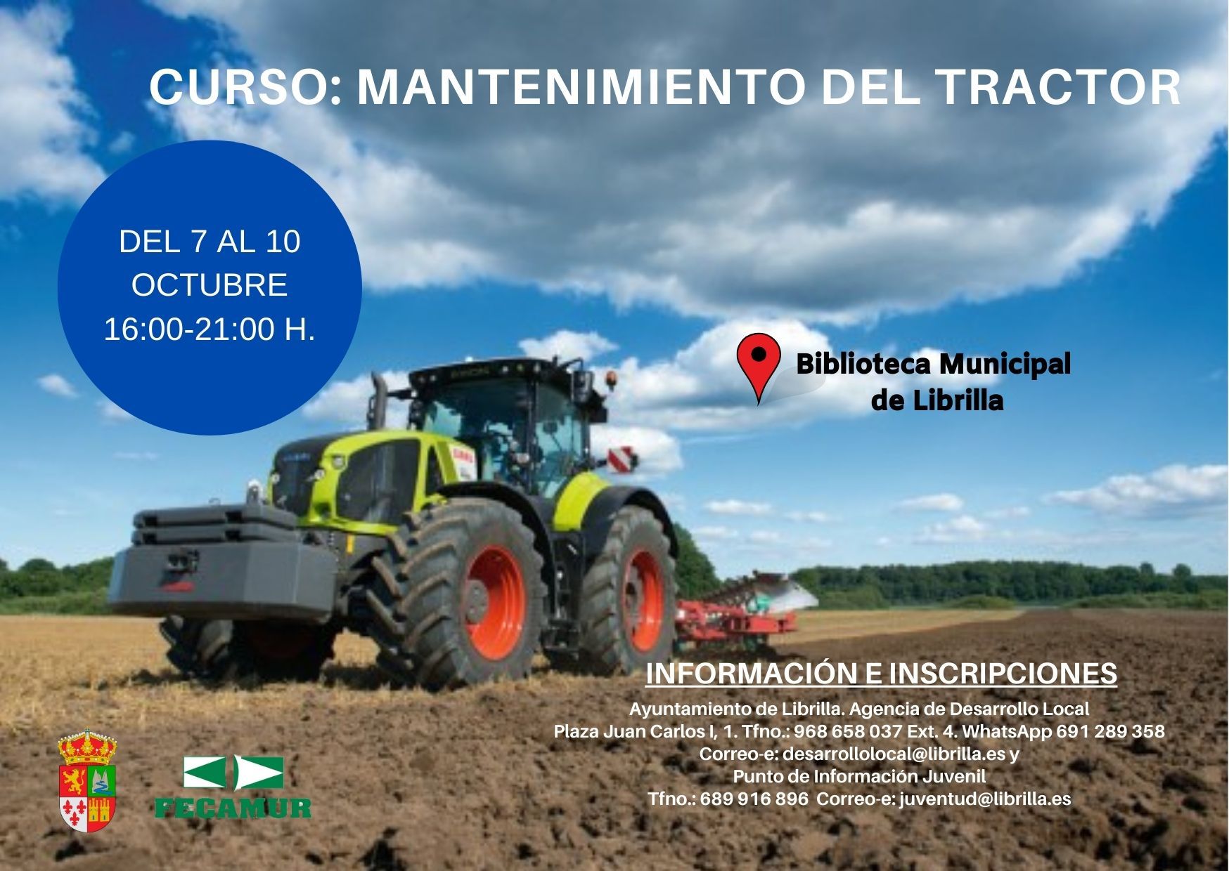 El Ayuntamiento de Librilla va a desarrollar, de manera gratuita, el curso de Mantenimiento del Tractor del 7 al 10 de octubre de 2025, en horario de 16:00 a 21:00h.